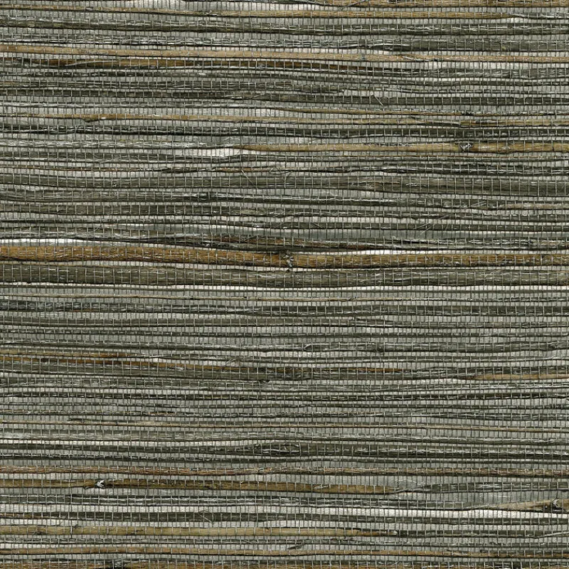 Natural exotic grasses are set against a metallic silver background. A dazzling and statement-making grasscloth. Fujian is an unpasted, grasscloth wallpaper.