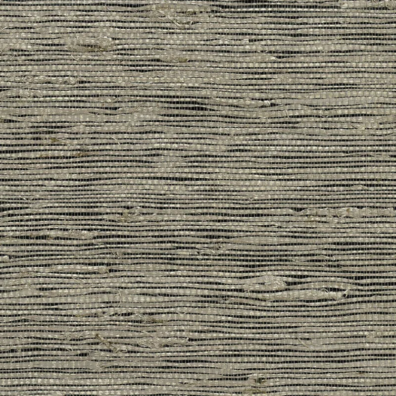 A woven texture made of exotic grass set against a black lacquer background. The taupe fibers have a silky sheen that catches the light. Yangtze is an unpasted, grasscloth wallpaper.