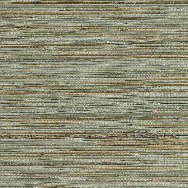 An intricately woven grasscloth wallpaper highlighted with a subtle metallic silver glaze. The beautiful sea green background complements the natural colored grasses. Shandong is an unpasted, ramie with pearl luster wallpaper.
