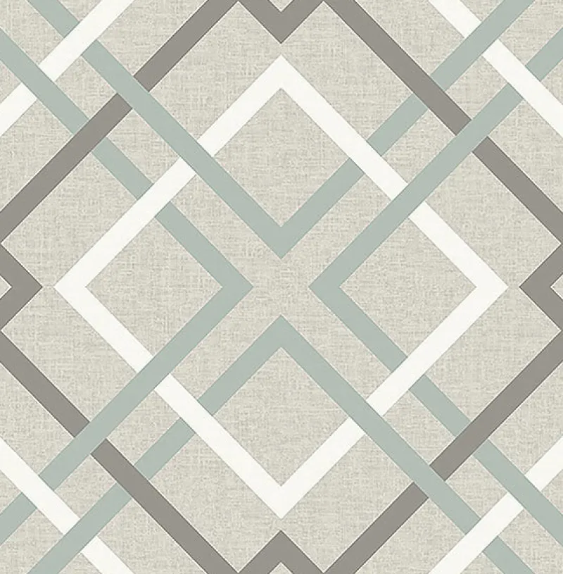 With an intricate trellis pattern, this modern plaid wallpaper has a beautiful colorway of taupe, grey and slate blue. Its large-scale print and linen inspired background add to its contemporary style. Tuvalu is an unpasted, non woven wallpaper.