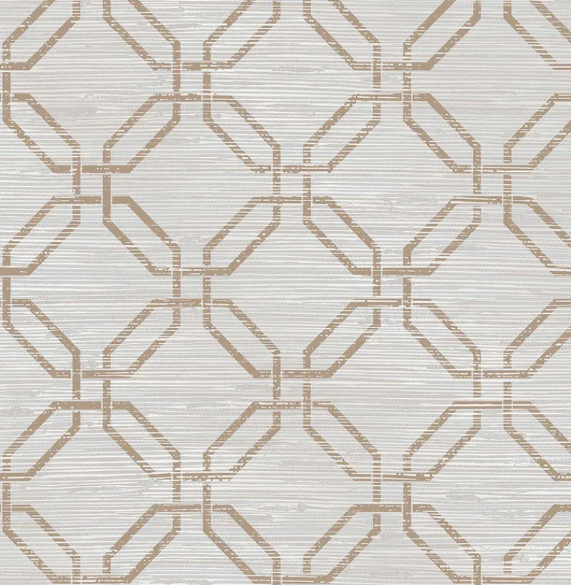 With a faded brown trellis print and taupe woven pattern, this wallpaper has a chic, tropical style. Its textured and silvery details give this wallpaper the look of grasscloth. Phaius is an unpasted, non woven wallpaper.