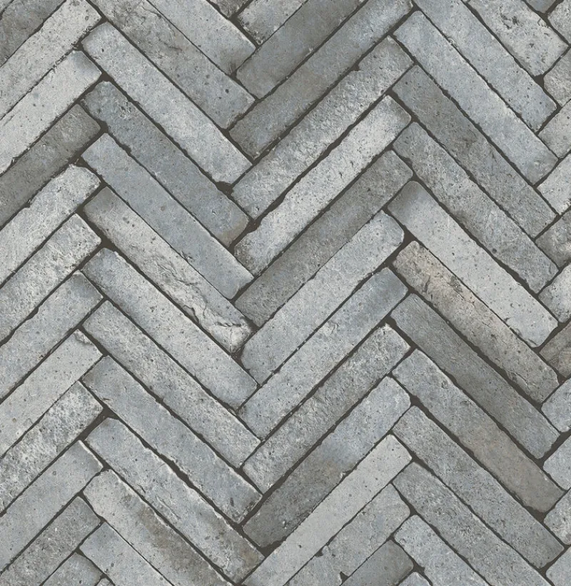 Directional marks and bold stonework come together in this dynamic faux stone wallpaper. This blue grey colorway is highlighted by warm accents. Arrow is an unpasted, non woven wallpaper.