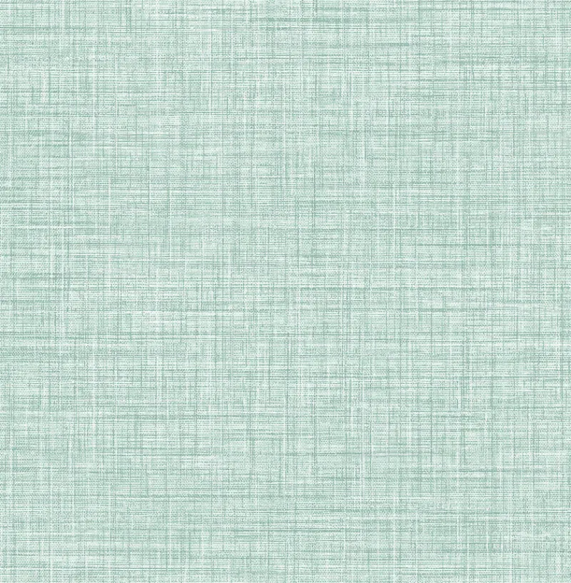 Soften your walls with this woven wallpaper design. The woven fabric print has a mint tone with a hint of teal thread. Tuckernuck is an unpasted, non woven wallpaper.