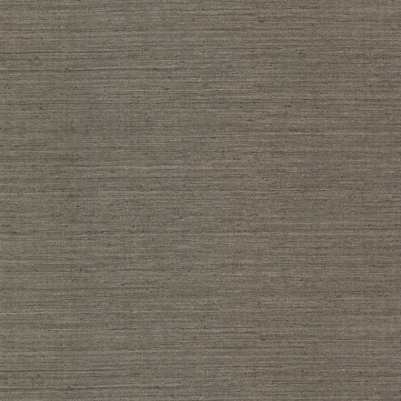 This texture creates the illusion of a raw silk fabric. Variated strands of taupe and grey mix among the brown base, adding depth to the wallpaper. Oscar is an unpasted, fabric backed vinyl wallpaper.