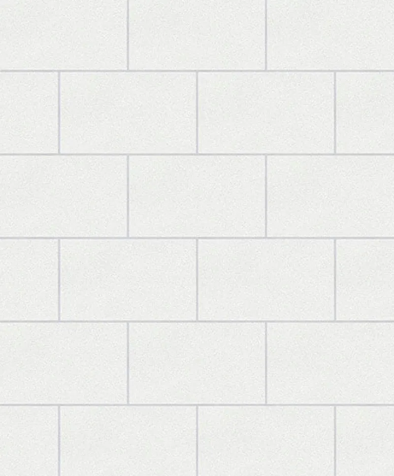 Farmhouse with a glamorous twist, this tile inspired wallpaper shimmers with glitter details and a pearlescent sheen. Its white hue lends to its clean and fresh look. Neale is an unpasted, expanded vinyl wallpaper.