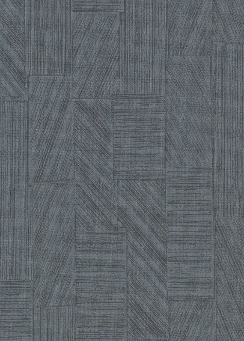 Farmhouse with a contemporary edge, this wood inspired wallpaper has a rich charcoal hue. Slim rectangles with distressed accents create a parquet effect, while raised inks add a dimensional touch. Create subtle drama and add texture to your walls with wallpaper from Cortina IV!