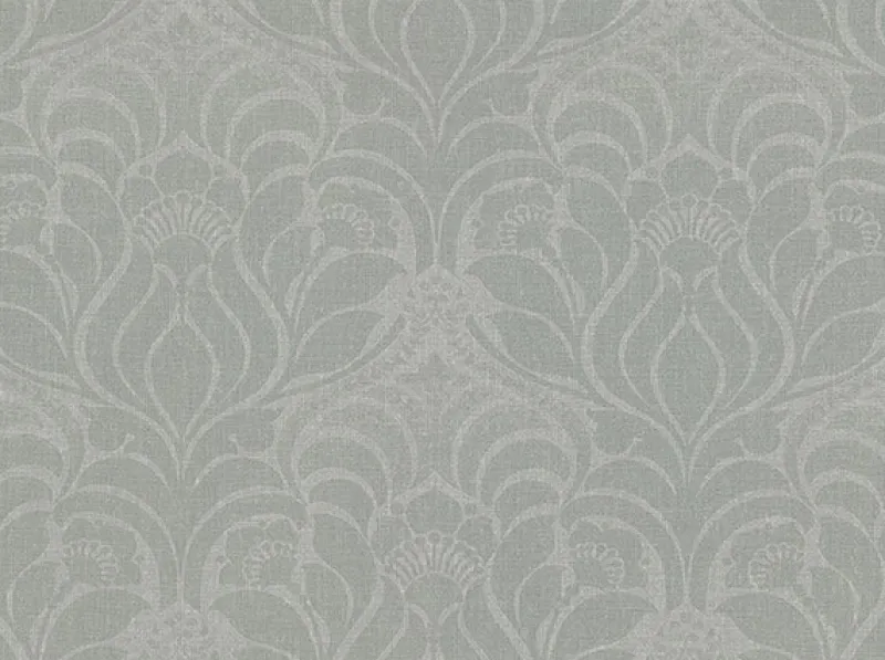 The interplay of sage and grey hues create a soothing damask wallpaper. Its faux fabric style is complete with a woven design and raised inks. Create subtle drama and add texture to your walls with wallpaper from Cortina IV!