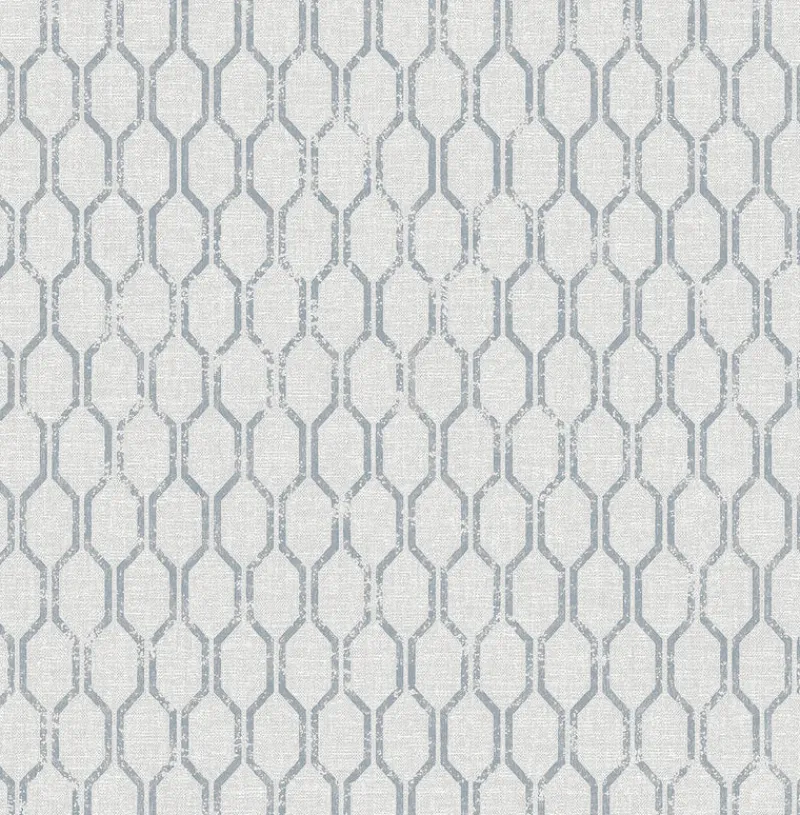 A slate geometric dazzles against a light grey background in this contemporary design. Raised inks lend to its fabric inspired look, while distressed accents add a reclaimed flair. Elodie is an unpasted, non woven wallpaper.