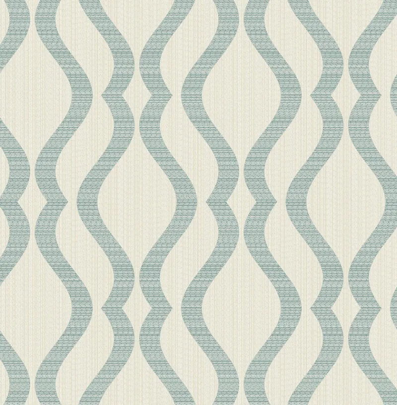 Complete with raised inks and champagne undertones, this wallpaper has the look of linen. A teal ogee pattern and beige background create a chic, coastal look. Yves is an unpasted, non woven wallpaper.