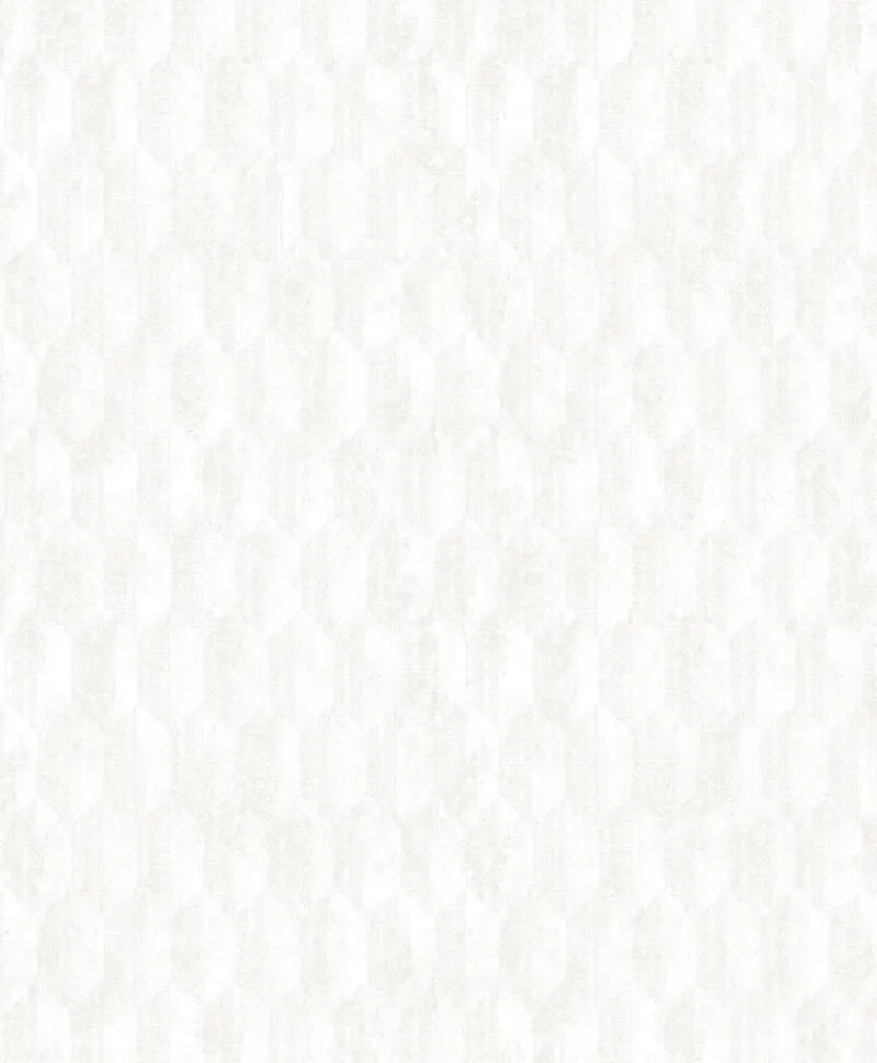 Shimmering with ivory details, this global wallpaper has a glamorous flair. Its geometric ivory print is accented by distressed details and soft raised inks. Kendall is an unpasted, non woven wallpaper.