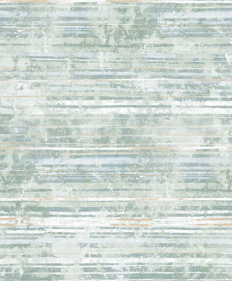 This sea green stripe wallpaper is both soothing and stunning. The serene color palette has a distressed effect, while soft raised inks create a dimensional look. Makayla is an unpasted, non woven wallpaper.