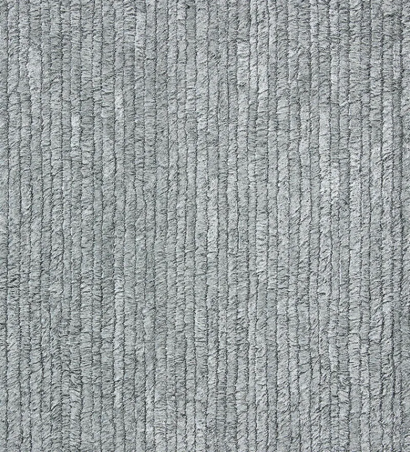 Create a dimensional look with this grey, textured wallpaper. Its intriguing striped pattern shimmers with silver glitter, adding to its glamorous style. Down is an unpasted, heavyweight vinyl wallpaper.