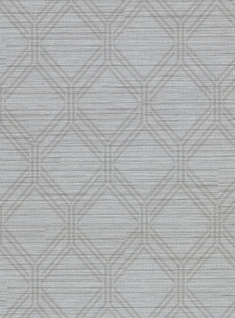 Add a glamorous touch to walls with this stunning geometric print. Hosted on a grasscloth inspired backdrop, grey and silver hues shimmer lending to this wallpapers modern flair. Vaughan is an unpasted, fabric backed vinyl wallpaper.