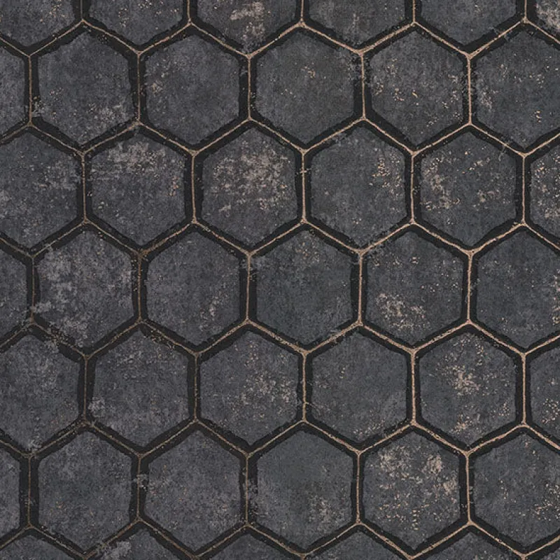 Create a sleek and dramatic feature wall with this charcoal and grey geometric design. Perfect for a modern styled home, its metallic outline will pop in any space. Starling is an unpasted, non woven wallpaper.
