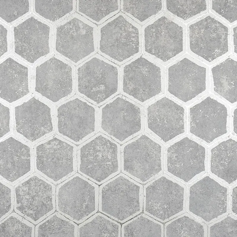 Add a contemporary flair to any room with this honeycomb pattern. With raised inks and metallic flecks, this grey and silver wallpaper will add a dazzling effect to any space. Starling is an unpasted, non woven wallpaper.