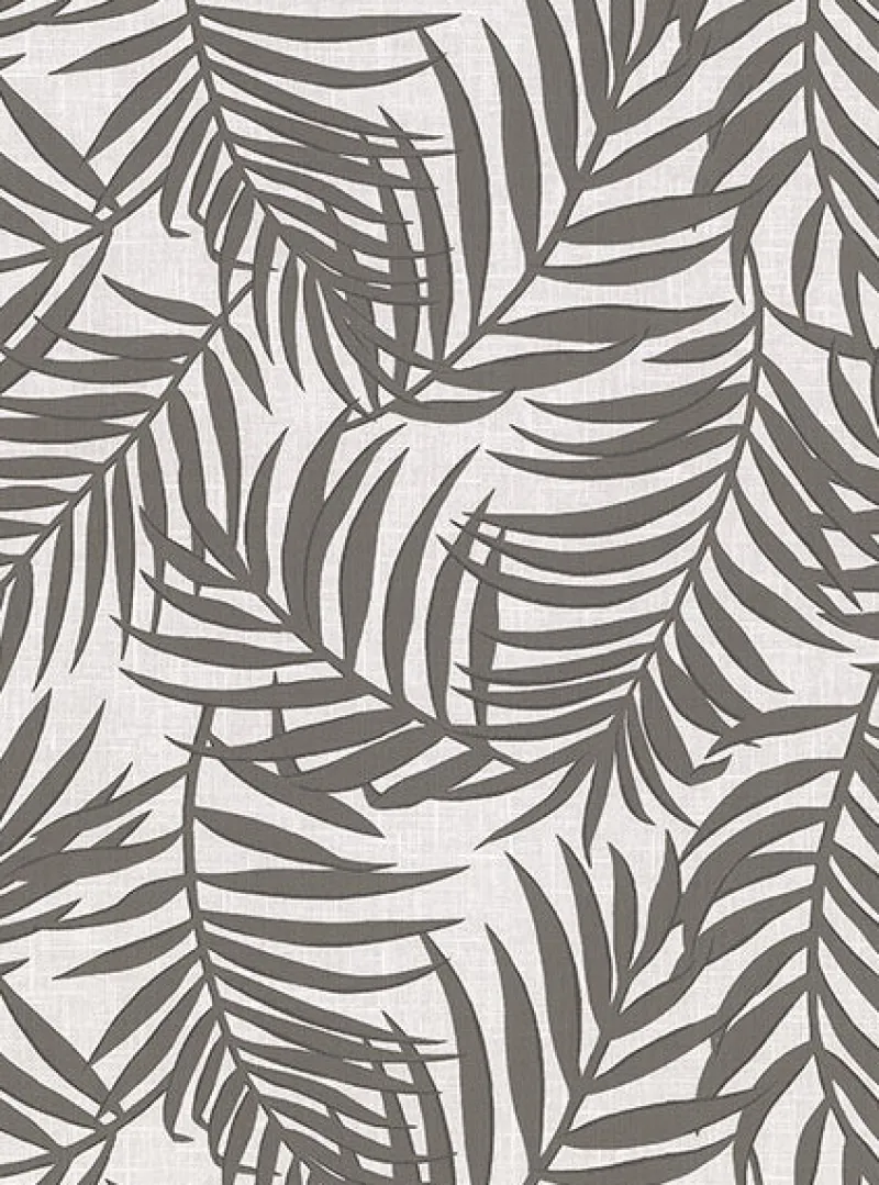 With a neutral color palette, this wallpaper features an eye-catching botanical design. Grey fronds cascade atop of a linen inspired backdrop lending to its soothing energy. Lanai is an unpasted, non woven wallpaper.