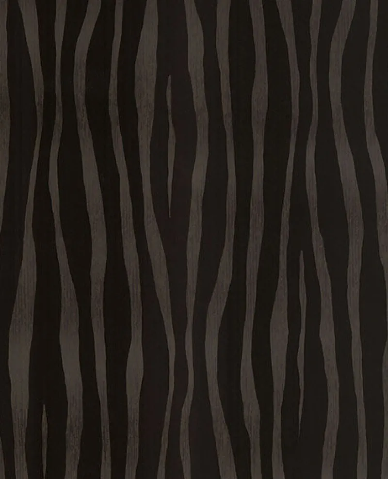 Safari-chic has never more elegant than with this zebra stripe wallpaper. This rich chocolatey design alternatives between velvety flock stipes and stripes that are a blend of ink brown and grey hues with a high-shine finish. Burchell is an unpasted, non woven wallpaper.