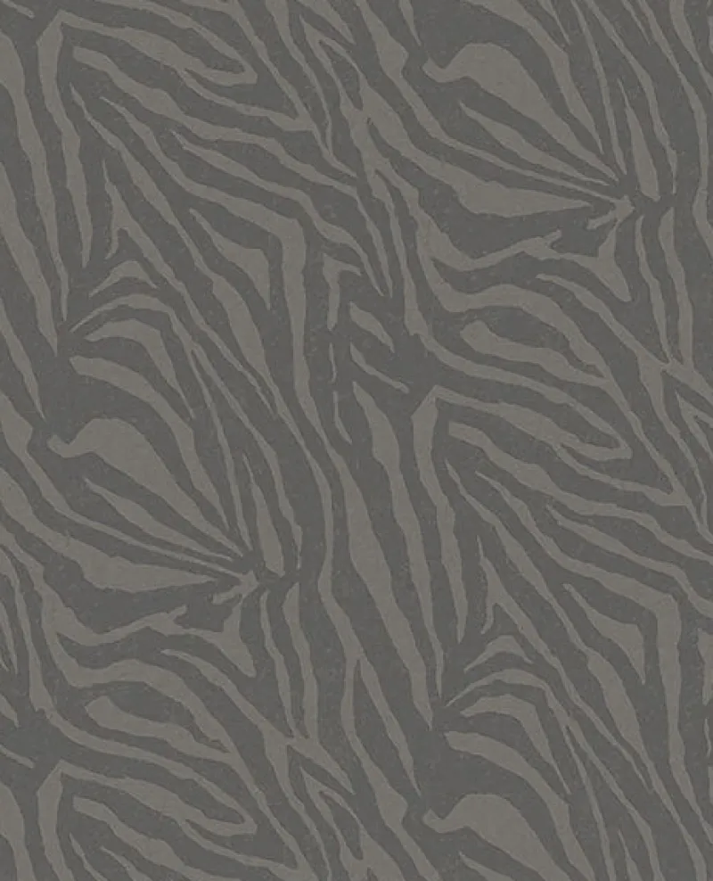 This moody all-black zebra stripe wall mural is perfect for a chic feature wall. Black stripe sit against a charcoal grey faux linen backdrop, the entire design splattered randomly with subtle grey inkblots. Zebra Black Wall Mural comes on 2 panels