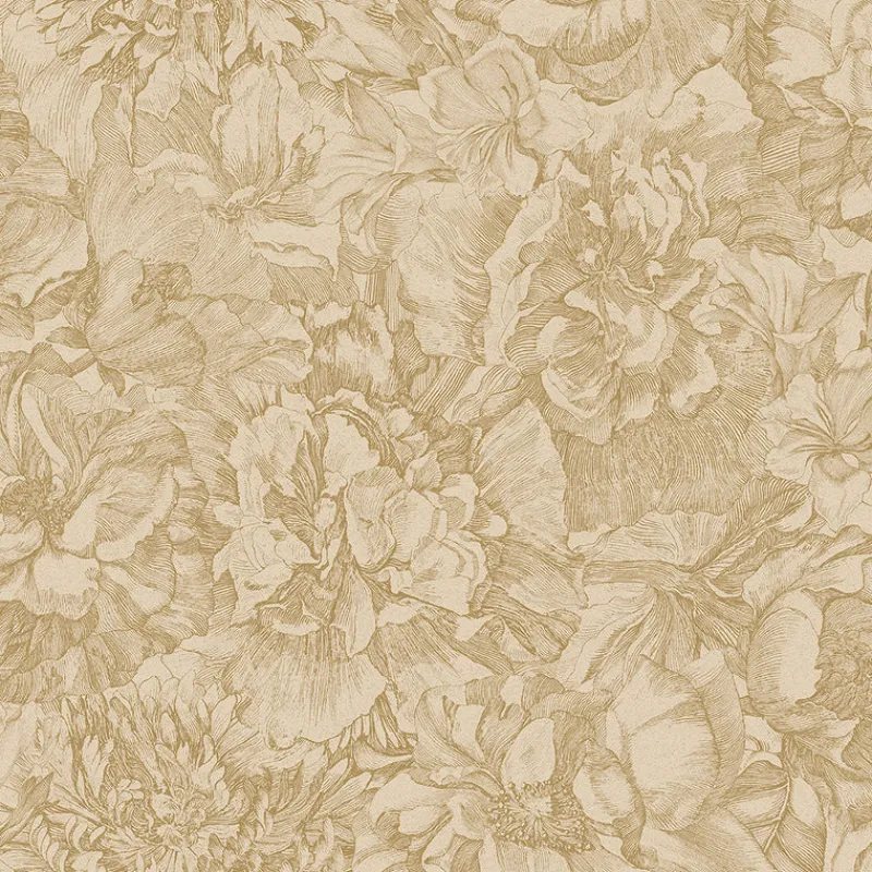 Transform interiors with this luxurious and artistic floral wallpaper. The lush botanicals are intricately detailed with gold inks atop of a cream backdrop, giving the design an elegant and vintage patina. Auguste is an unpasted, vinyl on non woven wallpaper.