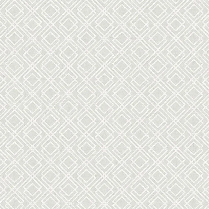 White lines cross over a light grey background in this small geometric wallpaper. Designed to look lovingly worn in, the faux texture detail gives it a comfortable farmhouse feel. Napa is a pre-pasted, non woven wallpaper.
