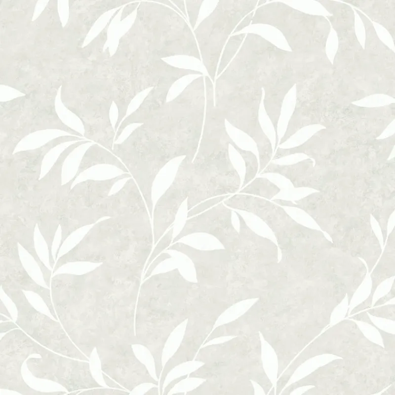 Semi-opaque white trails pop against a grey marble print. With a faux stone background, this botanical wallpaper has a chic feel and would be a perfect addiction to any bathroom decor. Sanibel is a prepasted, high performance wallpaper.