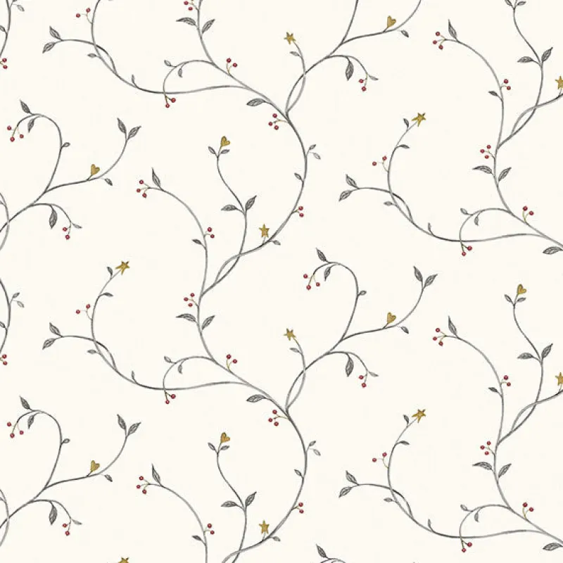 A charming twist on a floral trail, this charcoal vine features yellow hearts and stars. Its whimsical pattern pops against a crisp white backdrop. Kurt is a prepasted, non woven blend wallpaper.