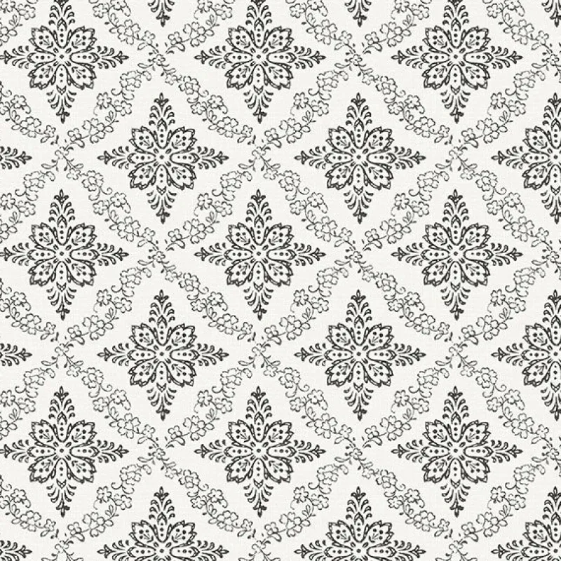 Invite a country flair into homes with this black and white geometric floral design. Printed on a white faux linen backdrop, this pleasing wallpaper will add a dimensional effect to rooms. Wynonna is a prepasted, non woven blend wallpaper.