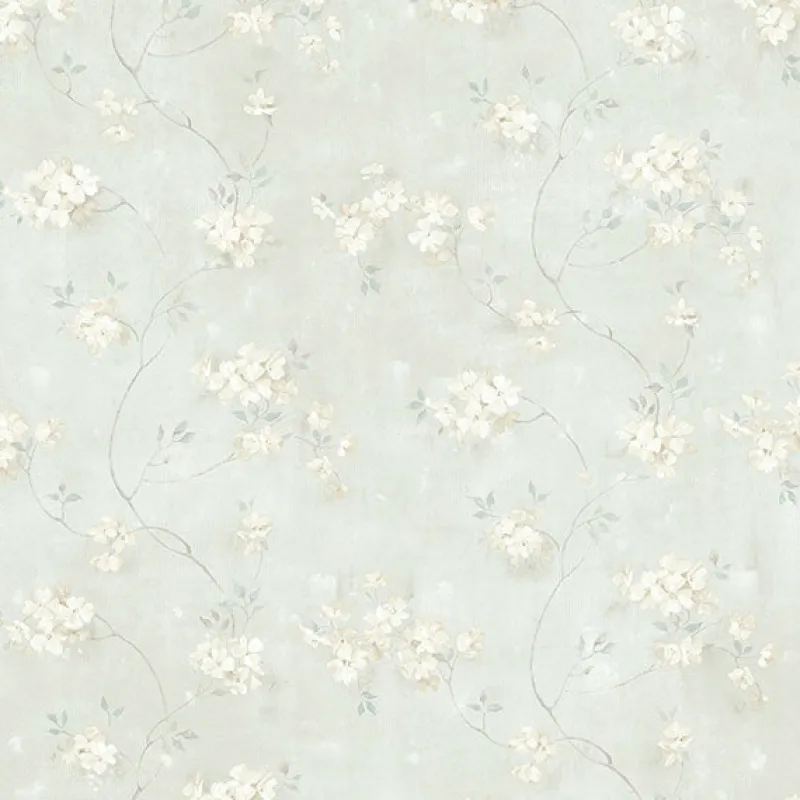 This delicate floral wallpaper features off white and taupe petals that exudes sophistication. Its teal background adds an organic touch to its nature inspired pattern. Braham is a prepasted, non woven blend wallpaper.