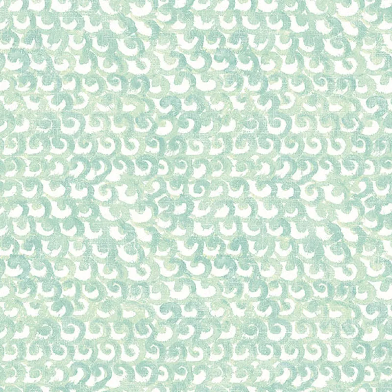 Teal and seafoam green waves crash along a shore in this unique design. The abstract pattern combined with its color palette mimics the look of the sea and its natural beauty. Saltwater is a prepasted, non woven blend wallpaper.