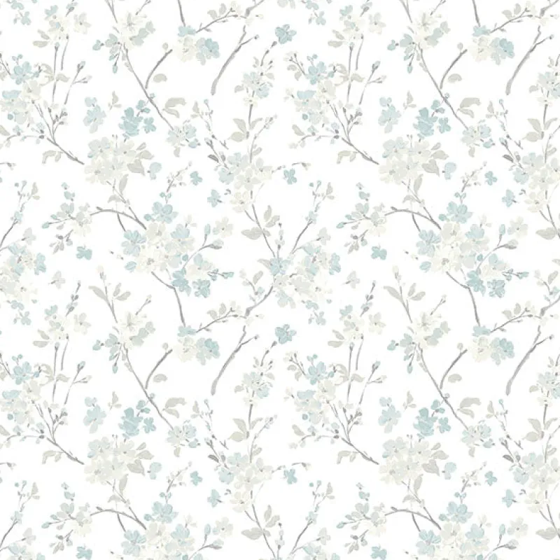 This sweet and sophisticated floral wallpaper will bring both character and charm to your walls! The delicate blue blooms are hand-painted along wispy grey stems and offset by a bright white backdrop. Glinda is a prepasted, acrylic coated paper wallpaper.
