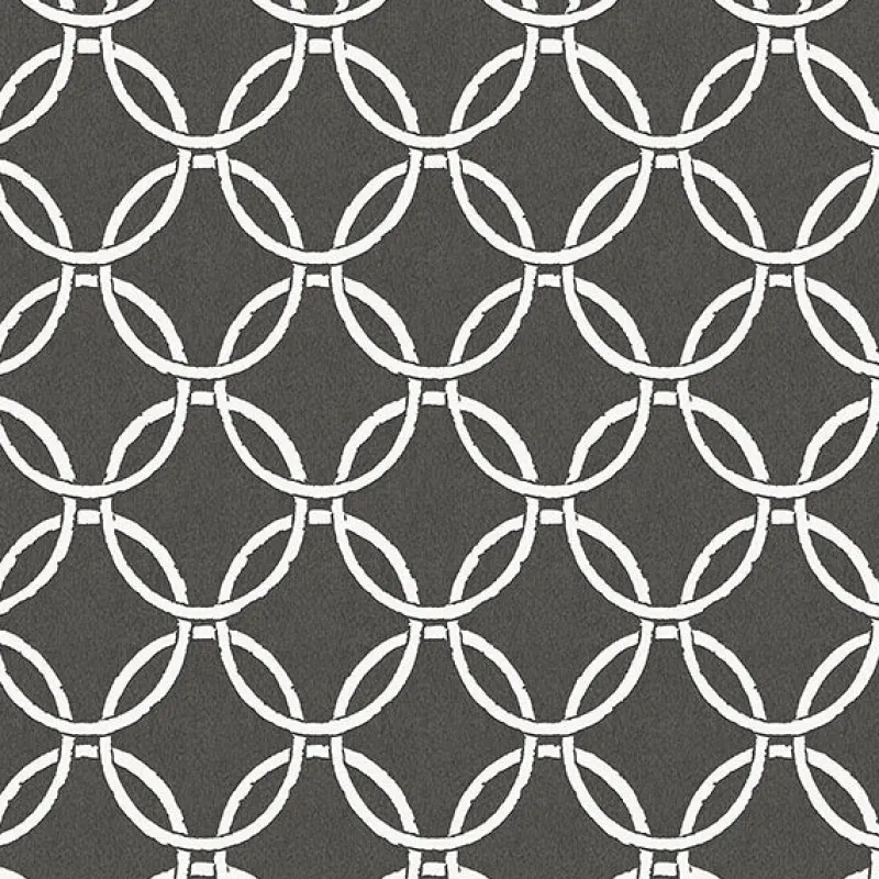 Enjoy classic design with modern appeal with this geometric wallpaper. The large interlocking white circles form a contemporary ogee pattern along the variegated black backdrop. Quelala is a prepasted, acrylic coated paper wallpaper.