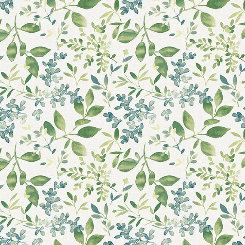 This enchanting botanical wallpaper brings the tranquility of the woods to your home. The leafy branches are painted in an array of watercolor greens and blues against a white backdrop with the look of fine woven linen. Tinker is a prepasted, acrylic coated paper wallpaper.