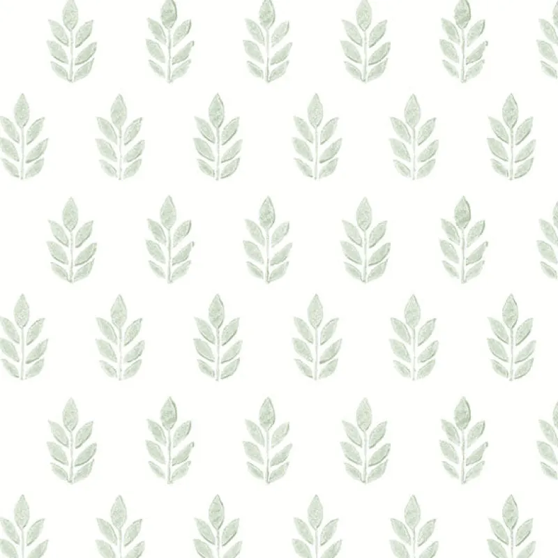 Enjoy a fresh home update with this elegant botanical wallpaper! The Scandinavian-inspired block print features a charming seven-leafed frond inked in soft sage green against antique white. Ervic is a prepasted, acrylic coated paper wallpaper.