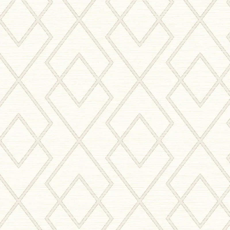 Elevate your home with this bright and airy trellis design. The simple diamond pattern is outlined in taupe against a creamy backdrop lined with subtle off-white raised inks. Blaze is a prepasted, non woven wallpaper.