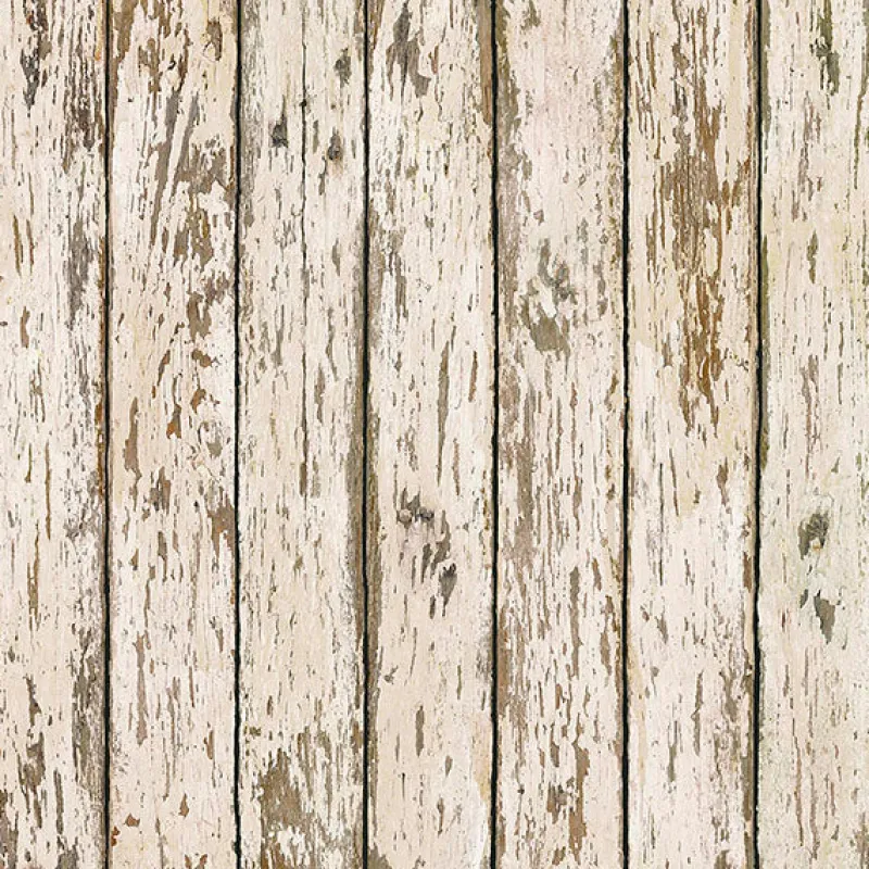 This heavily weathered faux wood wallpaper adds rustic charm to your home. The natural tones are worn away to reveal aged brown planks beneath the aging paint. Harley is a prepasted, non woven wallpaper.