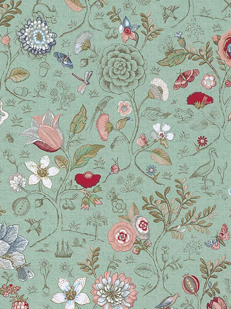 With forest animals and bright red, pink and blue flowers, this Eijffinger designed wallpaper is truly enchanting. A vivid teal background ties this eclectic woodland scene together perfectly. Espen is an unpasted, non woven wallpaper.
