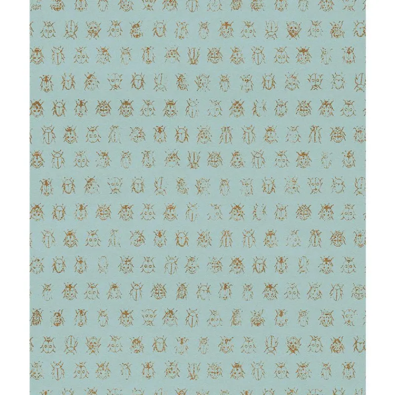 Add charm and shine to your walls with this charming wallpaper design by Eijffinger. With metallic ink, golden beetles shimmer across a soothing blue background, creating a whimsical feel. Flikker is an unpasted, non woven wallpaper.