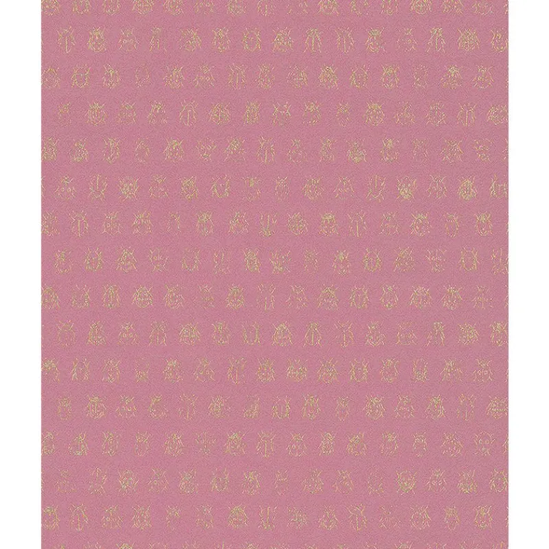 Golden beetles shimmer across a pink background in this playful wallpaper. Metallic ink details will add shine and a hint of glamour to your walls. Flikker is an unpasted, non woven wallpaper.