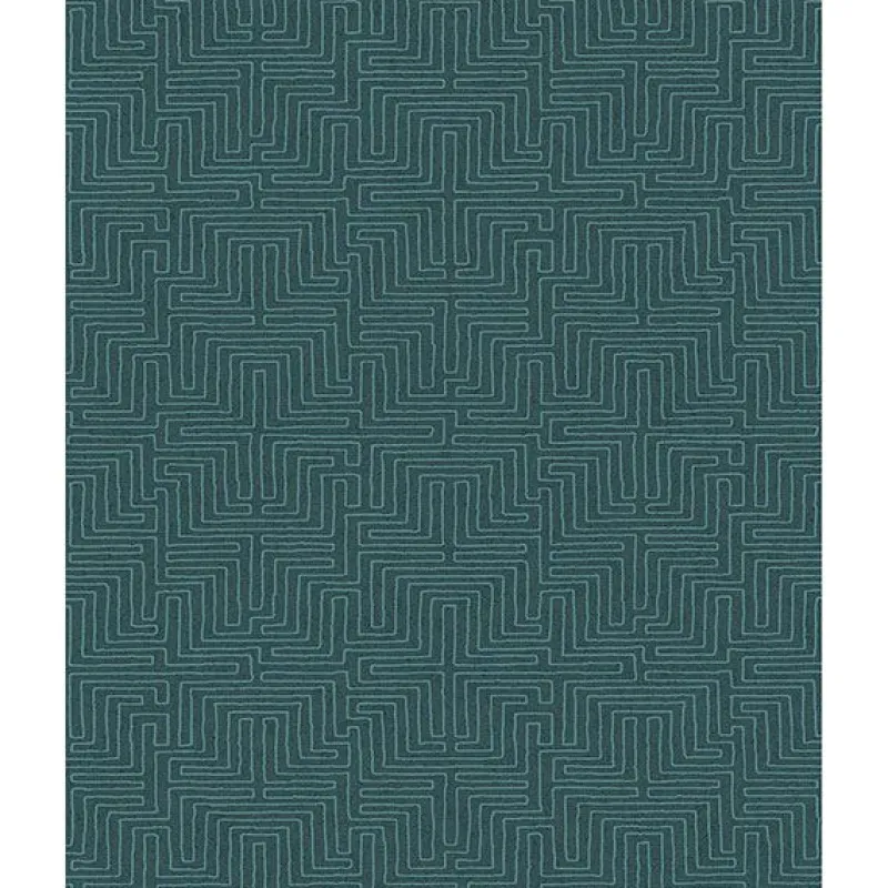 This geometric wallpaper is a bold print for walls. The teal color and subtle texture background create a vibrant design. Raised inks make the geometric print pop.