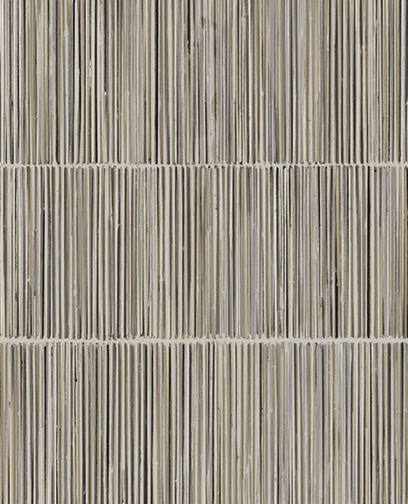 A globally inspired design with a glamorous touch, this grey wallpaper shimmers with gold highlights. Hundreds of vertical stripes resembling natural fibers and raised inks emphasize its dimensional effect. Aspen is an unpasted, non woven wallpaper.