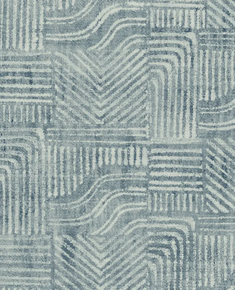 With a refreshing blue and off-white palette, this textured faux effects wallpaper has a breezy energy. Globally inspired geometrics will add a bohemian flair to walls. Pueblo is an unpasted, non woven wallpaper.