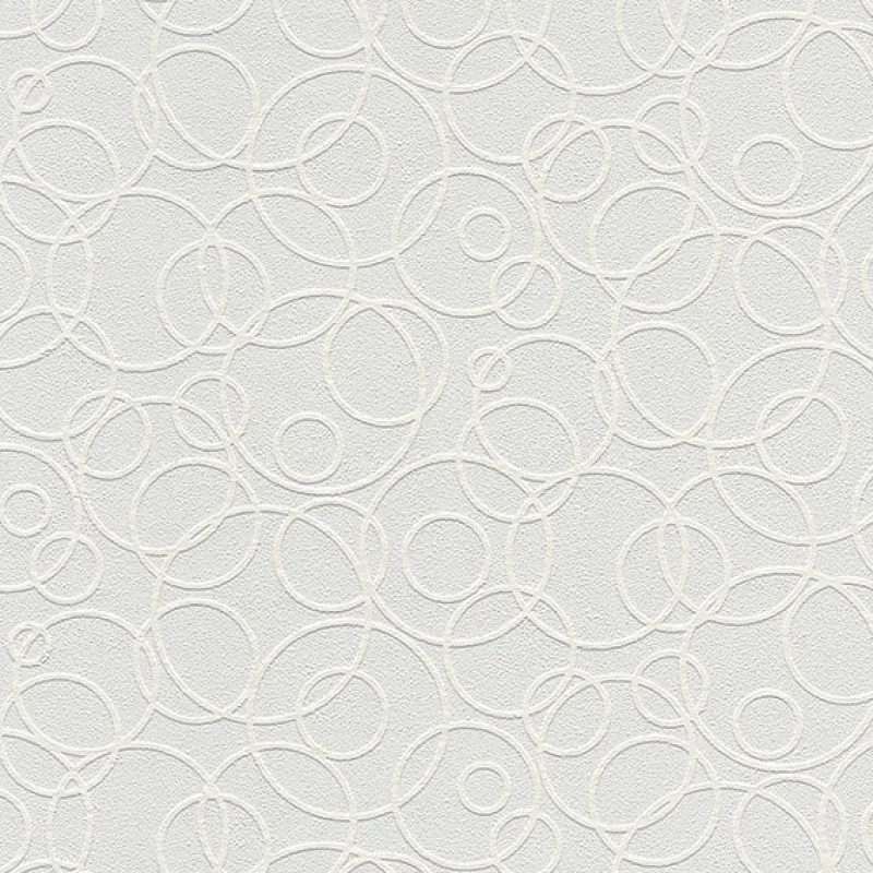 Overlapping circles create this fun, geometric pattern. The raised circles lie atop a dappled backdrop. Artemisia is an unpasted, non woven expanded vinyl wallpaper.