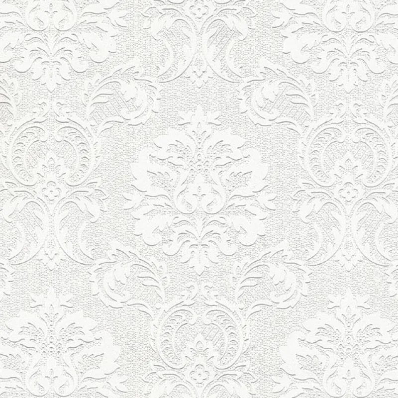 Exquisite and ornate, this elegant damask features regal florals surrounded of leafy scroll detailing. The raised effects bring texture and dimension to your space. Plouf is a prepasted, paperbacked expanded vinyl wallpaper.