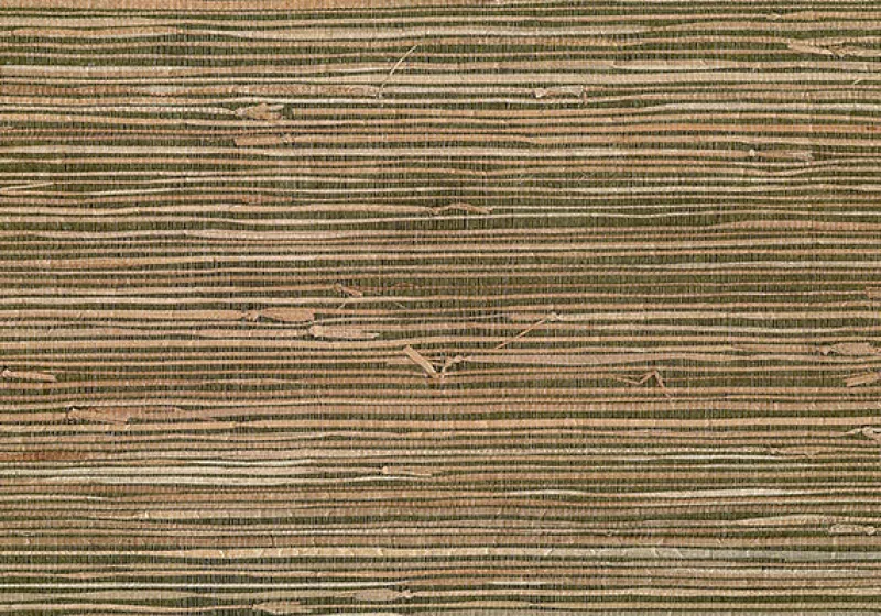 Army green paper peeks out from behind a rustic straw weave in this environmentally friendly grasscloth wallpaper.