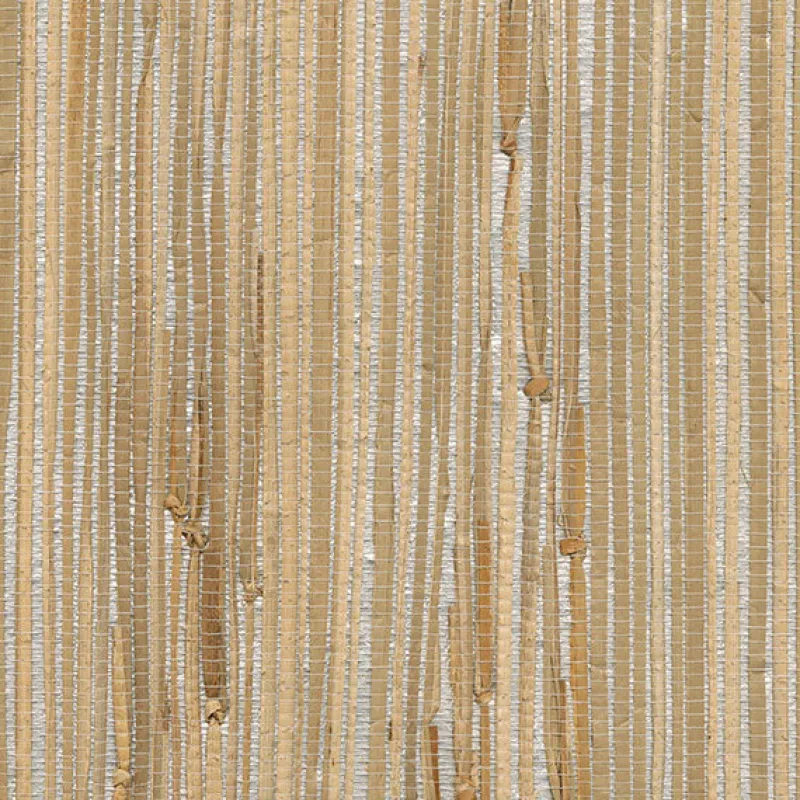 A gleaming pearl canvas peeks through a collage of different colored grasses on this eco-chic wallcovering that lends a rare beauty to walls.