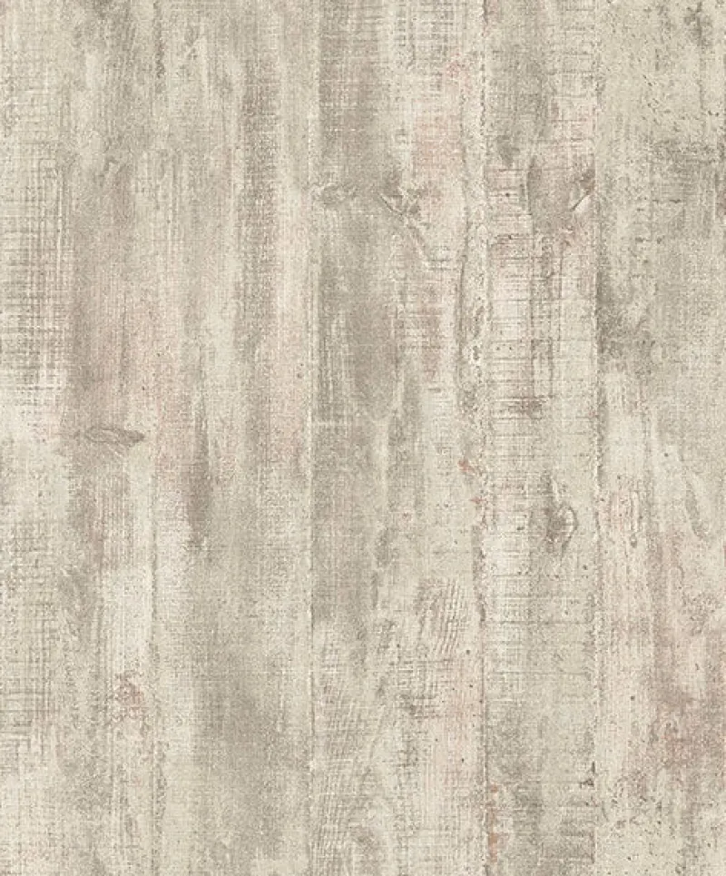 Add natural color and texture to your space with this weathered wood plank wallpaper. The warm khaki stain of these vertical planks is accented with grey woodgrain detailing and subtle distressing for a chic rustic look. Huck is an unpasted, non woven wallpaper.