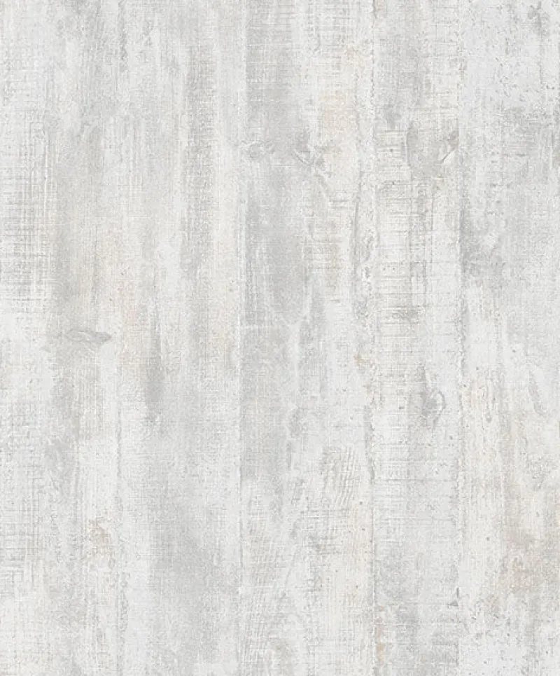 Bring a touch of character to your home with this weathered wood plank wallpaper. Vertical wood planks are washed in a delicate light grey hue, distressed sections revealing the warm natural taupe hues underneath. Huck is an unpasted, non woven wallpaper.