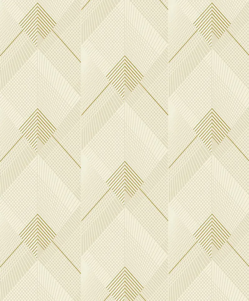 Bring Art Deco opulence to your home with this geometric wallpaper. Cream and warm taupe hues alternate between intricately detailed triangle and diamond shapes, the linework occasionally inked in gold for added metallic flair. Raoul is an unpasted, non woven wallpaper.