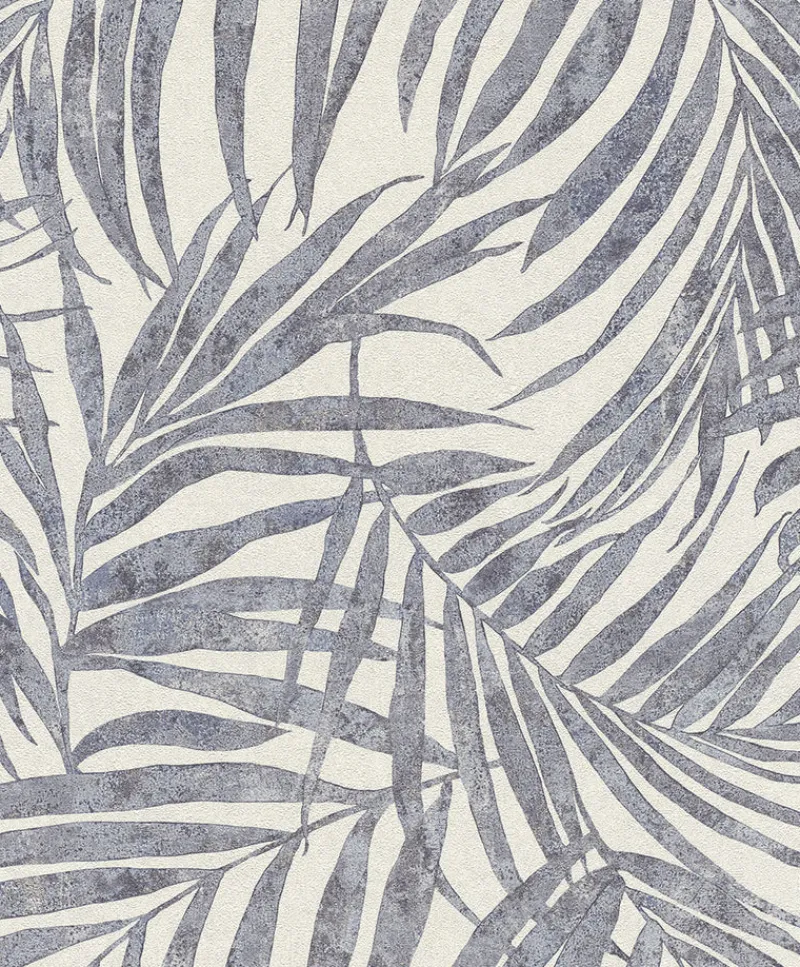 Bring botanical elegance to your walls with this palm frond wallpaper. The oversized leaves are inked in an array of watercolor blues against an off-white background, with raised inks adding a stucco-like texture to the entire design. Anzu is an unpasted, vinyl on non woven wallpaper.