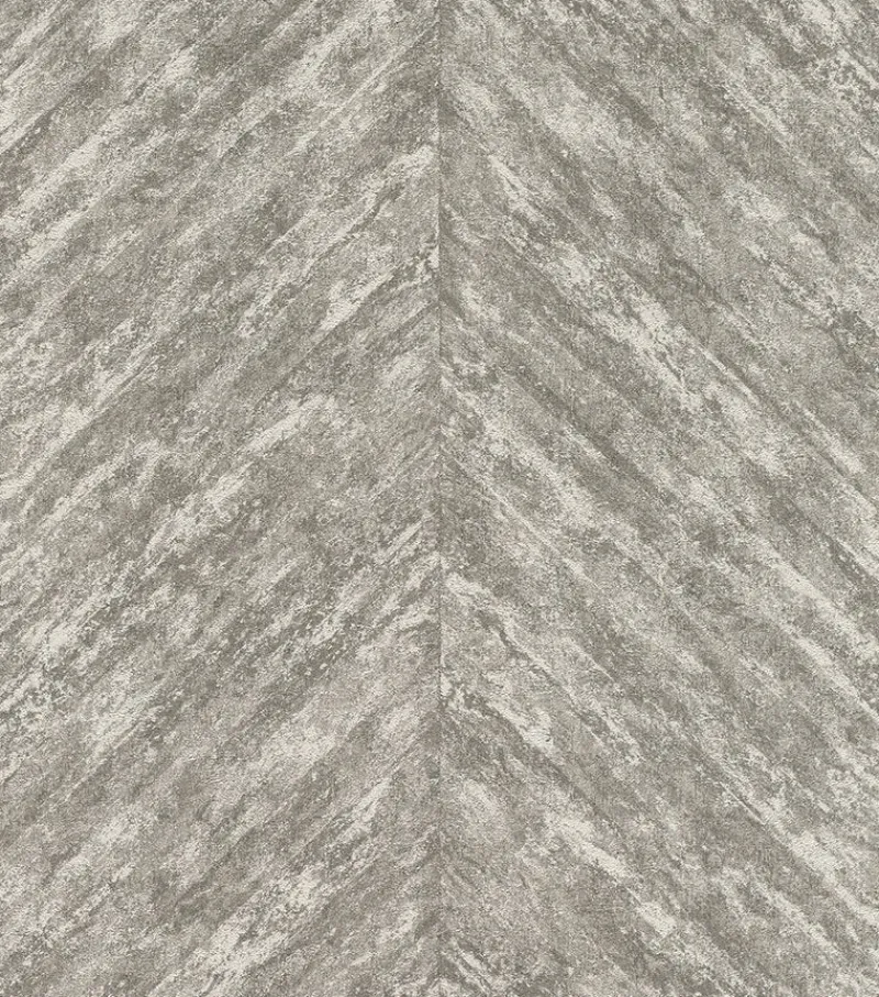Elevate your interiors with this glamourous and sophisticated design. Touches of pearlescent raised inks highlight the blend of silver and dark greys that make up the distressed chevron stripes. Madoka is an unpasted, vinyl on non woven wallpaper.